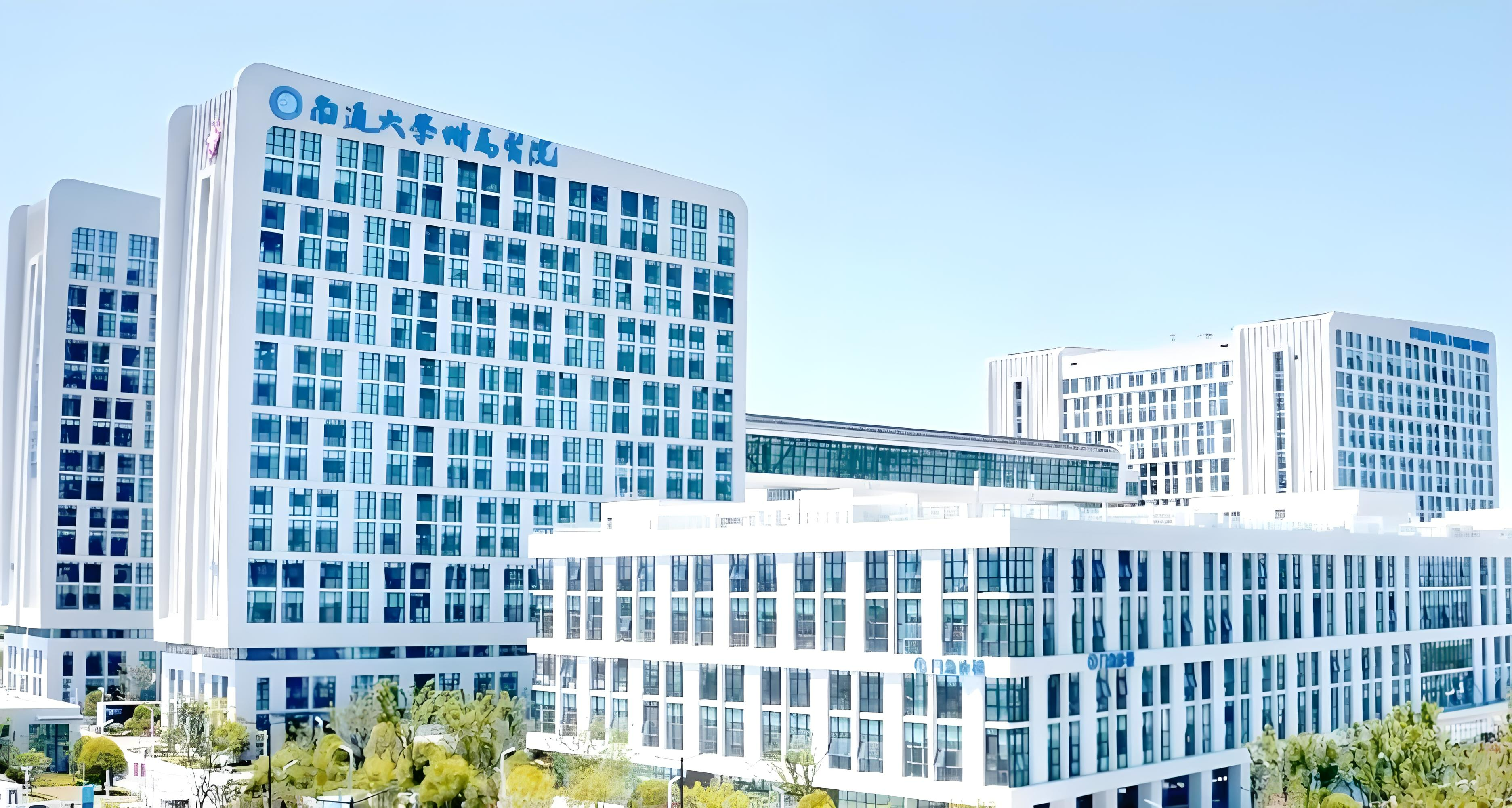 上海交通大学医学院苏州九龙医院是2003年5月经卫生部批准,由香港九龙集团投资13.5亿人民币兴建,并与上海交通大学医学院合作管理的三级甲等综合性医院。医院2006年开业,占地面积11.3万平方米,建筑面积21.3万平方米,核定床位1500张。